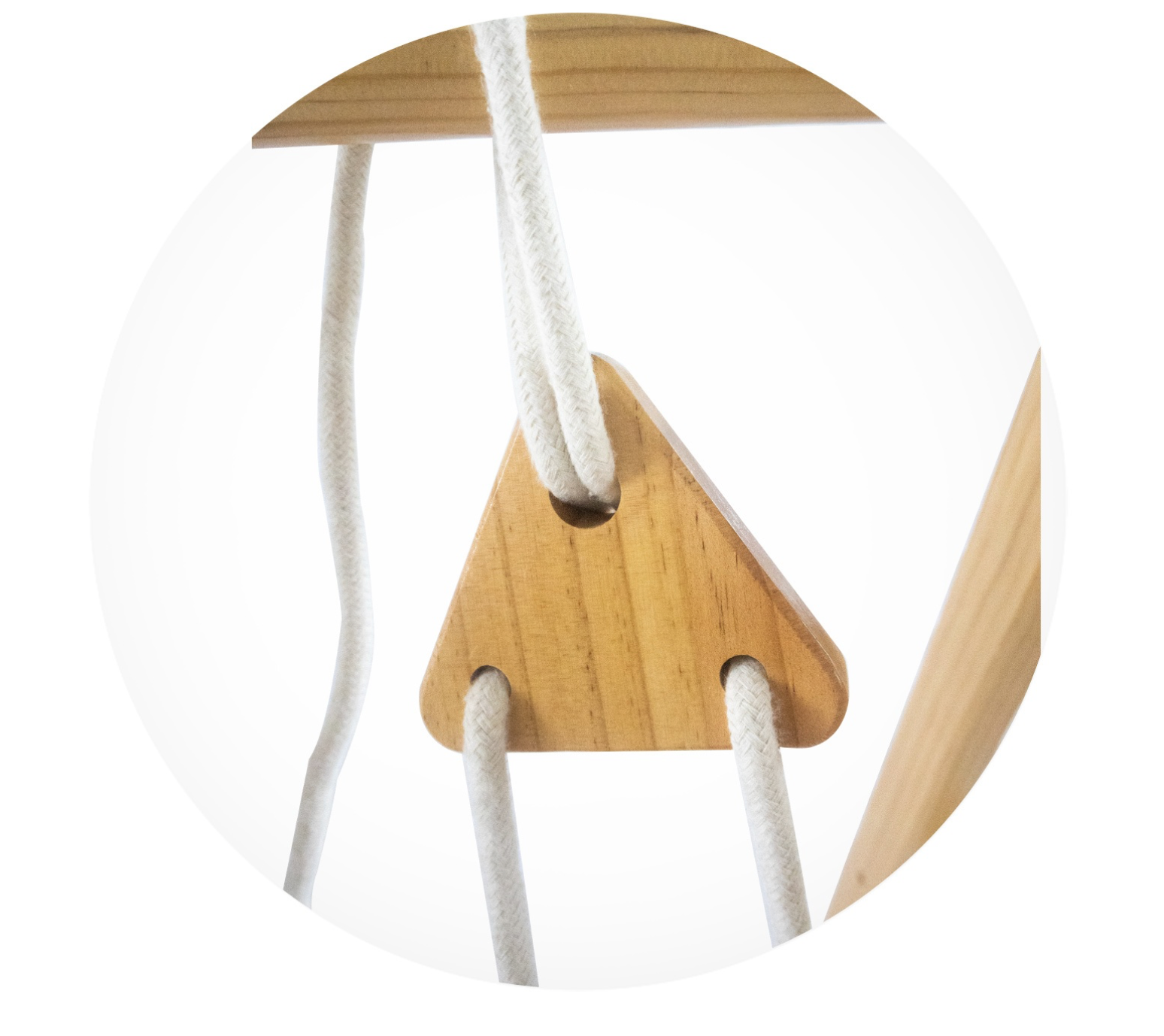 Balançoire réglable en hauteur avec cordes épaissies et crochets en bois ;