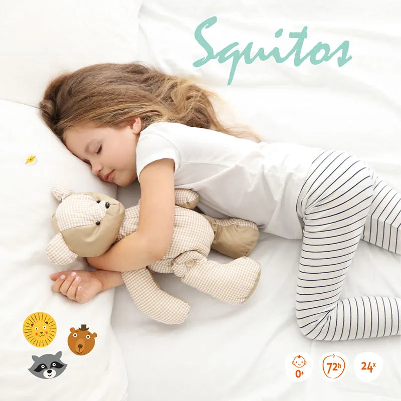 Squitos ce sont des patchs anti-moustiques spécialement conçus pour les jeunes enfants et nourrissons (0+), à partir d'ingrédients 100% naturels.