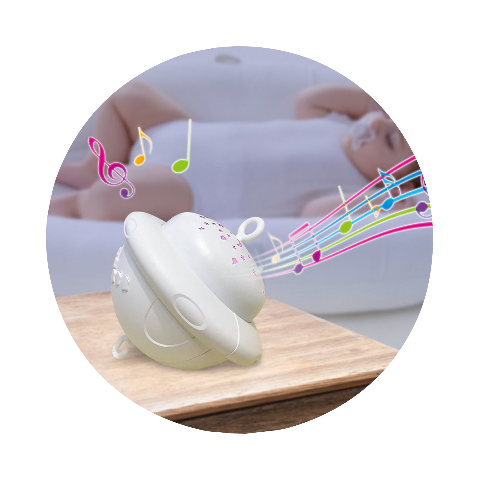 Ce mobile musical est adapté aux nouveau-nés. De douces mélodies aident bébé à s'endormir plus facilement. Le mouvement apaisant spécial du mobile capte l'attention de bébé et le maintient occupé. Le jouet projette différentes couleurs et formes pour calmer bébé. Chaque peluche danse au-dessus de sa tête, bébé adorera regarder ces personnages tourner. Ce jouet aide au développement visuel et auditif.