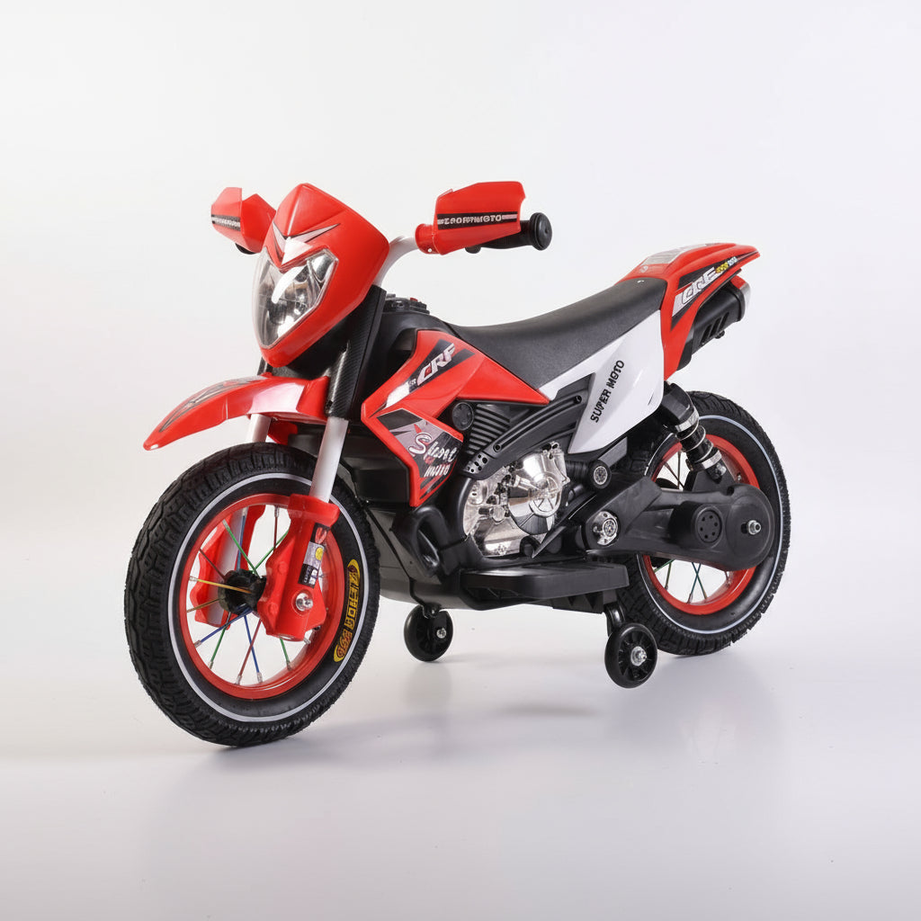 Moto électrique conçue pour les enfants de 2 à 4 ans, offrant une expérience de conduite sécurisée et amusante. Alimentée par une batterie 6V7Ah.